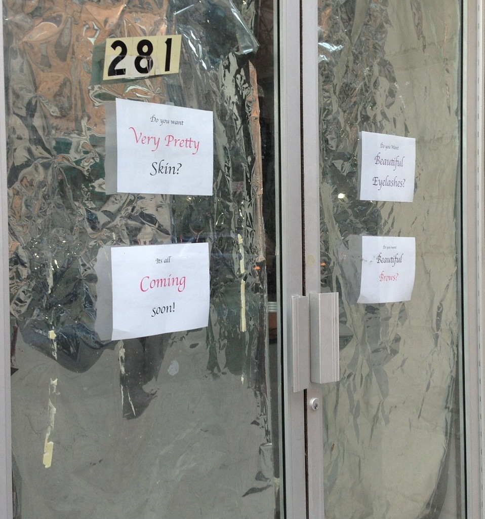 A skin care business will be opening soon in Harlem on 114th Street and Frederick Douglass Blvd, according to a reader. I walked by the location recently to check it out and the signs posted on the door at 281 West 114th Street definitely say “very pretty skin?” The prior tenant in this commercial space, which is in the Douglass Condo, was a campaign office.
