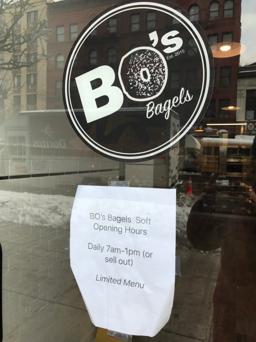 Feeling hungry for a bagel after that big snowstorm? Harlemites do not have to go far now for that big, round fluffy pan any more. Bo’s Bagels, located on 116th Street between Frederick Douglass Blvd and Adam Clayton Powell, Jr. Blvd in Central Harlem, is now open for business. They have been open for about a week under a soft opening schedule, i.e. from 7 am to 1 pm. Stop by and grab a bagel and stay tuned for grand opening details.
