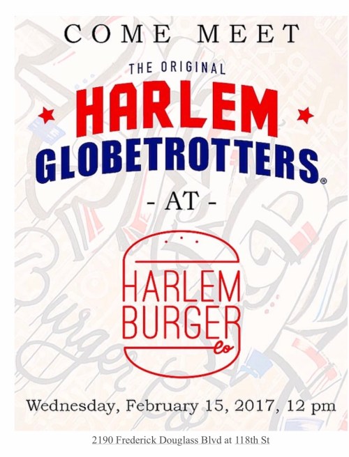 According to Experience Harlem, the world famous Harlem Globetrotters are scheduled to be at Harlem Burger Company tomorrow, February 15 at noon. Harlem Burger Company is located on 118th and Frederick Douglass Blvd, i.e. Harlem’s Restaurant Row!