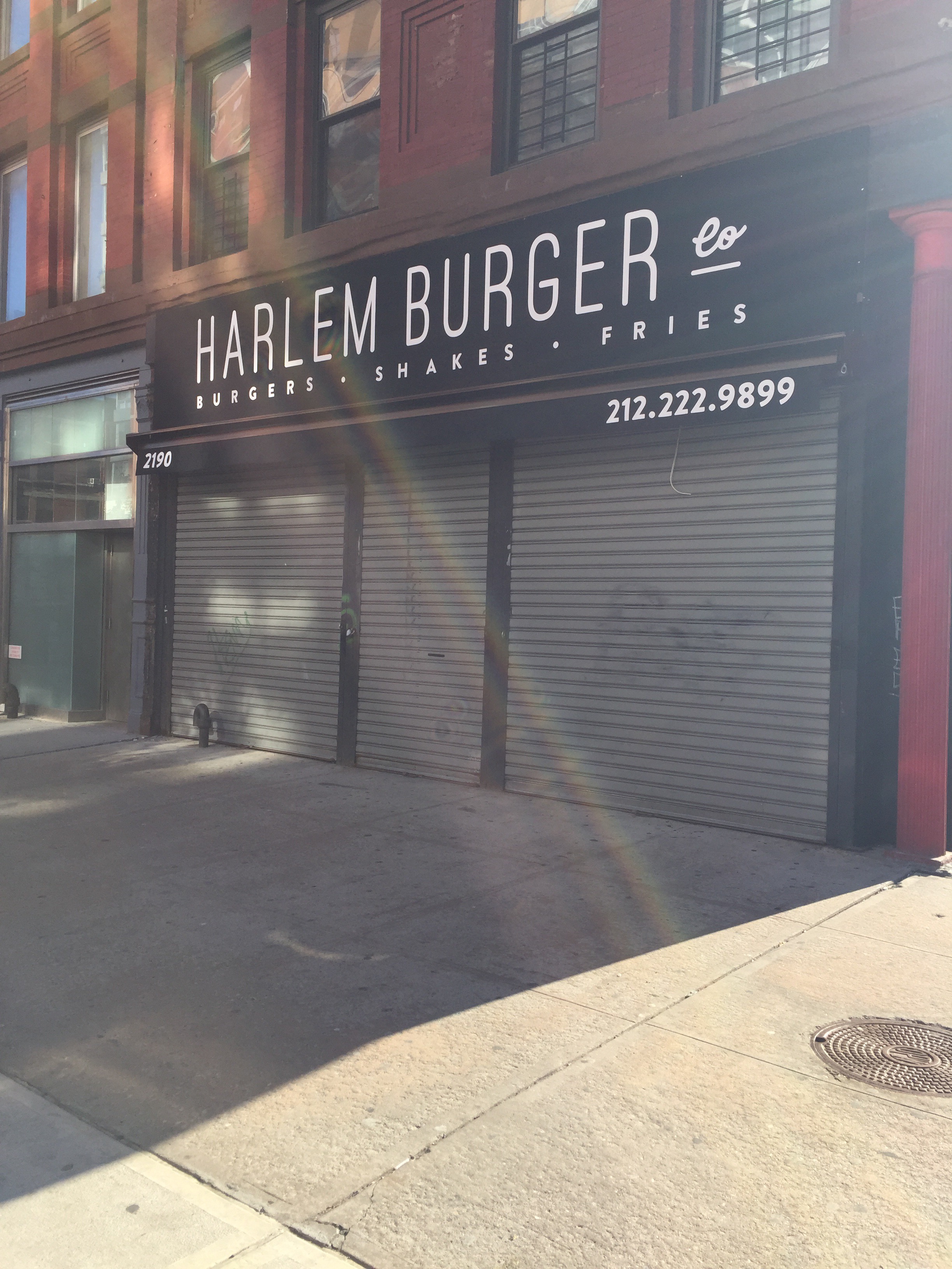There have been several attempts to open a full service hamburger joint on or near Frederick Douglass Blvd, aka Harlem’s restaurant row, in past years but none have either succeeded to open or stay open. Now Harlem Pizza Co, which has its pizza joint on 116th Street, is hoping to be sort of the first to open a restaurant on row dedicated to hamburgers with a place called Harlem Burger! The signage is up on 118&FDB, a good indicator that it’s opening soon.