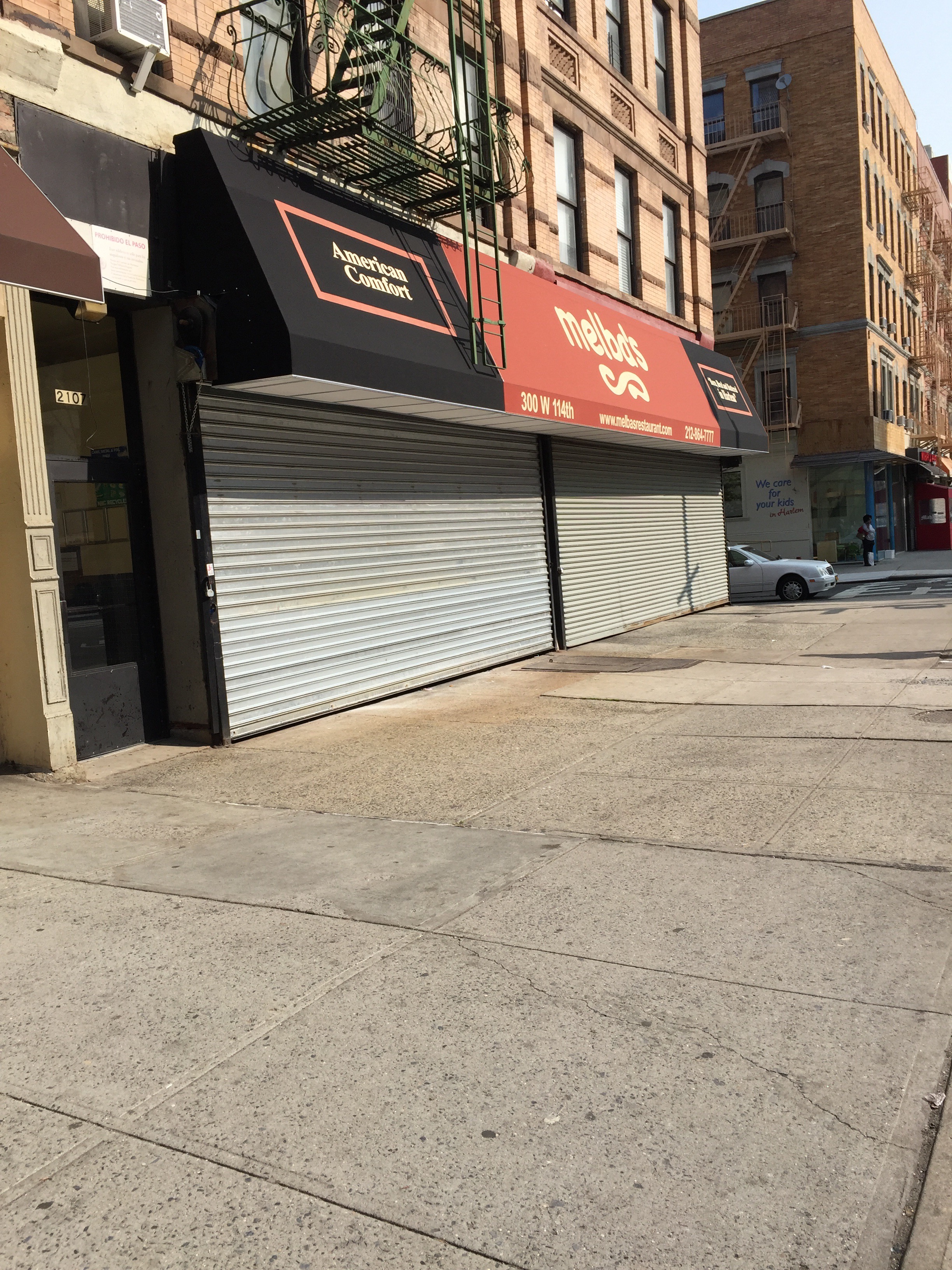What prompted the questions around the status of Melba Wilson’s ten year old restaurant on Harlem’s restaurant row is that someone snapped a photo of that infamous sticker from the City slapped on the restaurant’s grey metal rolling gate. Ouch!