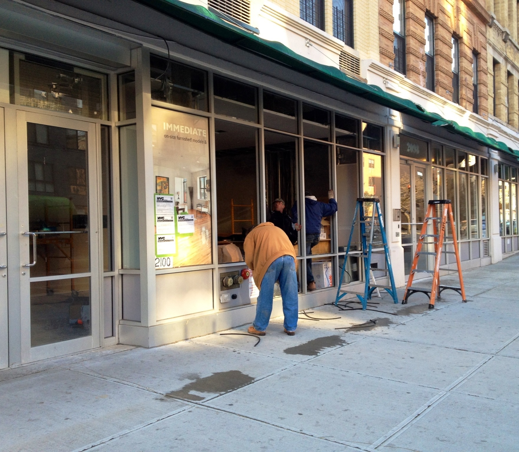There was construction activity happening yesterday (March 26) at 2100 Frederick Douglass Blvd, which will be the home of Harlem Food Bar (HFB). And it appears Harlem Food Bar will have seating next to full length, open windows so that patrons can look out on to FDB? Very nice. I can already imagine sipping some wine and people watching!