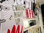 Harlem Food Bar is working hard toward its opening day, which is expected in a few weeks. Yesterday, they were busy interviewing job applicants. While they were screening potential employees, Harlem Food Bar had the entire place on display for passerby’s. When walking by HFB, which is located on Frederick Douglass Blvd between 113th and 114th Street, one can quickly see a giant colorful mural on display in the back.