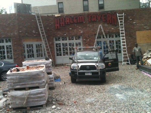 What does The Tonic Bar located in Times Square have in common with Harlem? The Tonic Bar is owned by a couple who live in Harlem. They’ve been residents of Harlem since 2006. The couple behind The Tonic Bar in Times Square have now decided to invest 100 percent in where they live by launching Harlem Tavern, a neighborhood bar & grill, at 2153 Frederick Douglass Blvd. This is the space we told you about back in April how the corner gas station/auto shop was up for lease. (Oh…and a reader too had sent us an update on the recent construction happening at this corner space.)