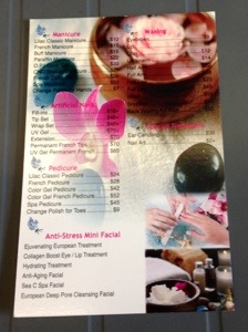 Lilac offers manicure, pedicures, artificial nails, waxing and special treatments, such as nail art and ear candling. Their rates start at $10 and go all the way up to $70 for gels. Lilac is open from Monday-Saturday from 10 am to 9 pm, which is an hour or two later than Z Nails on 116th Street and Coco Nail Salon and Polished FingerTips on FDB; and on Sunday they are open from 11 am to 8 pm.