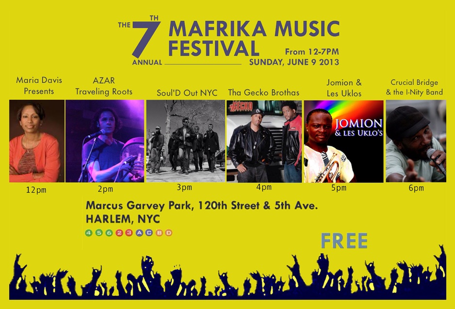 The seventh annual Mafrika Music Festival is also happening June 9 in Marcus Garvey Park in Harlem. The program starts at noon, runs till 7 pm and it’s FREE to the public. Enter Marcus Garvey Park at 120th street and 5th Avenue in Harlem. As always, this event has involvement from Yatenga French Bistro and Bar and ShrineNYC.