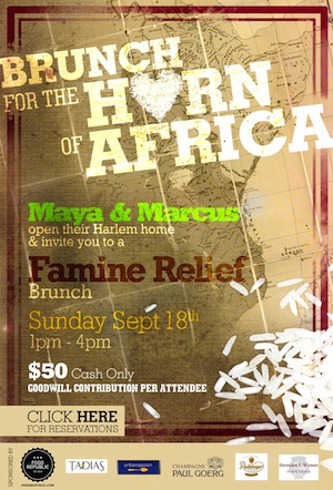 Marcus Samuelsson, along with his wife Maya and several other notable organizations, have organized “Brunch for the Horn of Africa” on September 18th at Marcus and Maya’s apartment in Harlem. From 1 p.m. to 4 p.m. for $50 bucks, the Samuelsson’s will be serving traditional American brunch items as well as a few Ethiopian dishes for “Brunch for the Horn of Africa.” Go to this link to make your reservation. Once you RSVP, you will be sent a confirmation email with all the specific details.