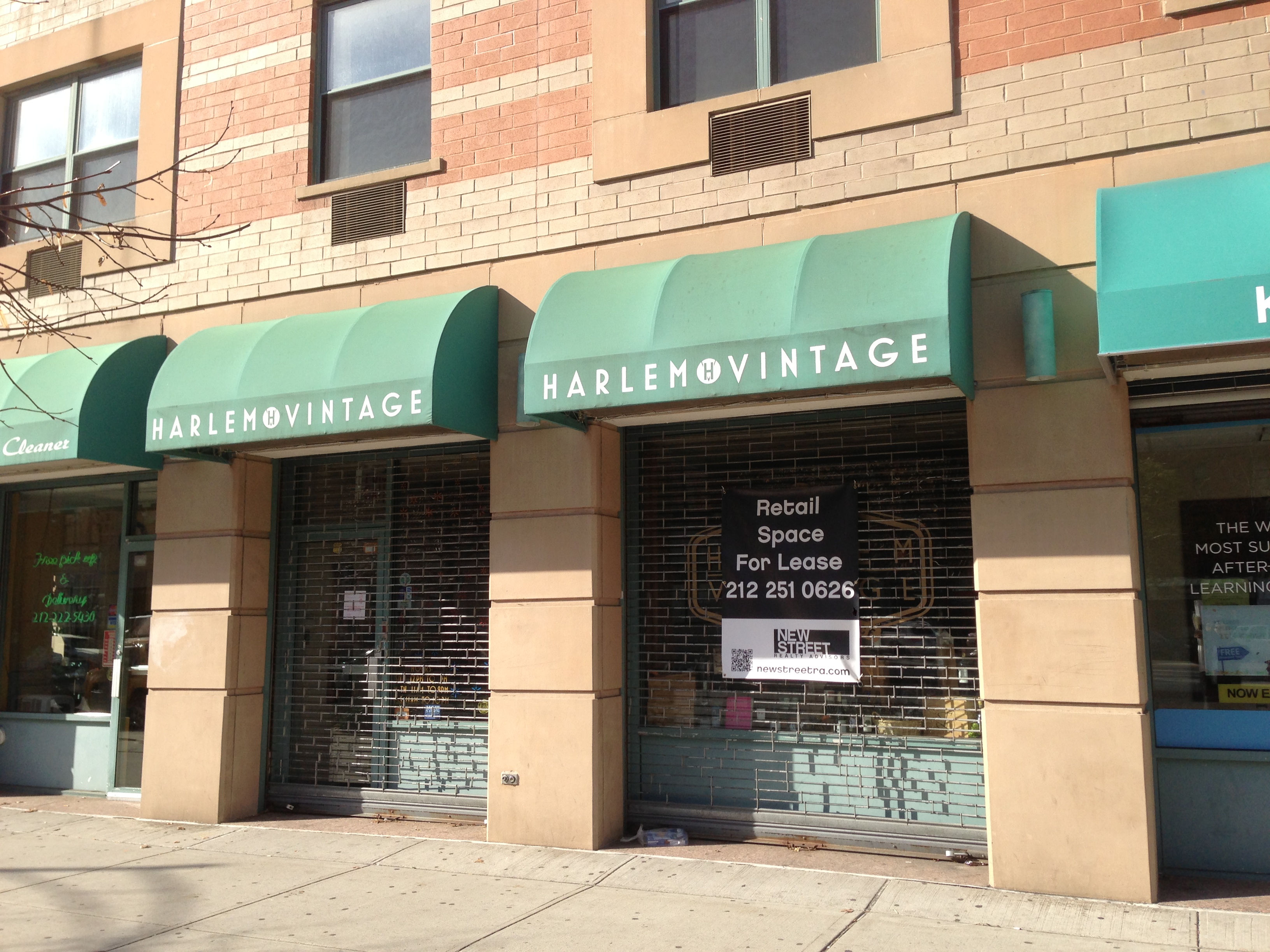 A few days ago I received a message along with a picture in my inbox asking: what is going on with the commercial space where Harlem Vintage was located? The photo sent in by a reader reveals there is sign up on the old Harlem Vintage Space that says “For Lease.”
