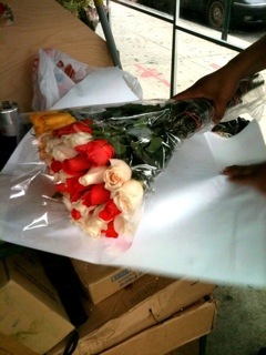This particular flower stand has an abundance of fresh roses, sunflowers, daisies and mixed flowers for sale-more so than other Bodega stands in Harlem. The flowers at this stand are all beautifully stacked and grouped accordingly where it makes the street-walker stop, look and buy. That’s what happened to us. We ended up buying two dozen colored roses for $10 and a bouquet of daisies for $5! What a deal!