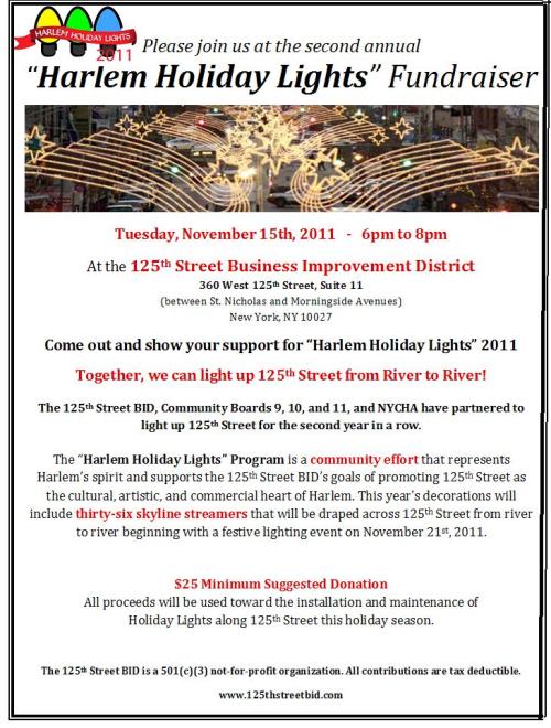 On Thursday, November 21, from 10am-9:30pm the 125th Street Business Improvement District will kick off the holiday shopping season with its Harlem Holiday Lights 2013 celebration. This year the event will include an outdoor festival, in-store and on- the-street activities as well as a scavenger hunt and parade of lights. This FREE event, open to the public, will celebrate two significant milestones– 20-years of BID operations and the 200th anniversary of 125th Street being placed on the Great Manhattan Street Grid.