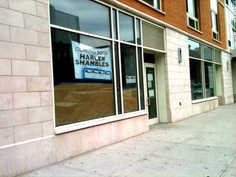 Looks like commercial retail space in Harlem on Frederick Douglass Blvd is slowing getting scooped up! It appears from the photo below that the Livmor has sold (or rented out) some of its commercial space to a business called Harlem Shambles. I have never heard of this business and looking online for information, the only item I could find is Harlem Bespoke blogging that Harlem Shambles is a butcher shop! Hmm. I wonder what type of products they will be offering? Just meat! Or seafood too? And what does this mean for Best Yet and Central Market that are not too far away?