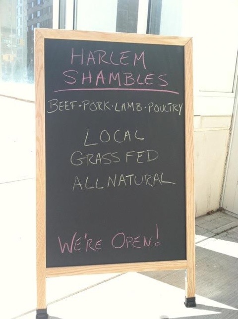 In today’s New York Times’ Dining & Wine section it asks “wonder why a new uptown butcher is called Harlem Shambles?” We know the answer since we’ve been following this new local business on Frederick Douglass Blvd since it’s opening, however its great news that the Times is presenting this question…and answer…to its global readers! Shambles is an old-time word for butcher shop!