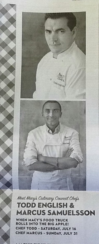 For those interested in the first stop of the Macy’s Food Truck, it is happening this weekend, July 16, downtown at Union Square’s Farmers Market with Chef Todd English.