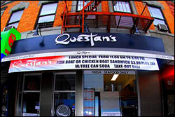 A reader asked us if we noticed that Questan’s, located at 2113 Frederick Douglass Blvd., is closed tonight, July 27. I hadn’t really paid attention until I checked on my home from dinner tonight. I walked by and it is in fact dark tonight, Wednesday, July 27. That’s kind of odd for a Wednesday night-especially during the summer. Maybe they are getting ready to celebrate their two-year anniversary? They opened up for business in August 2009.