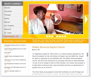 3. Then click on the Washington, DC Market (The competition is divided up into regions. This is where Gospel for Teens is located)