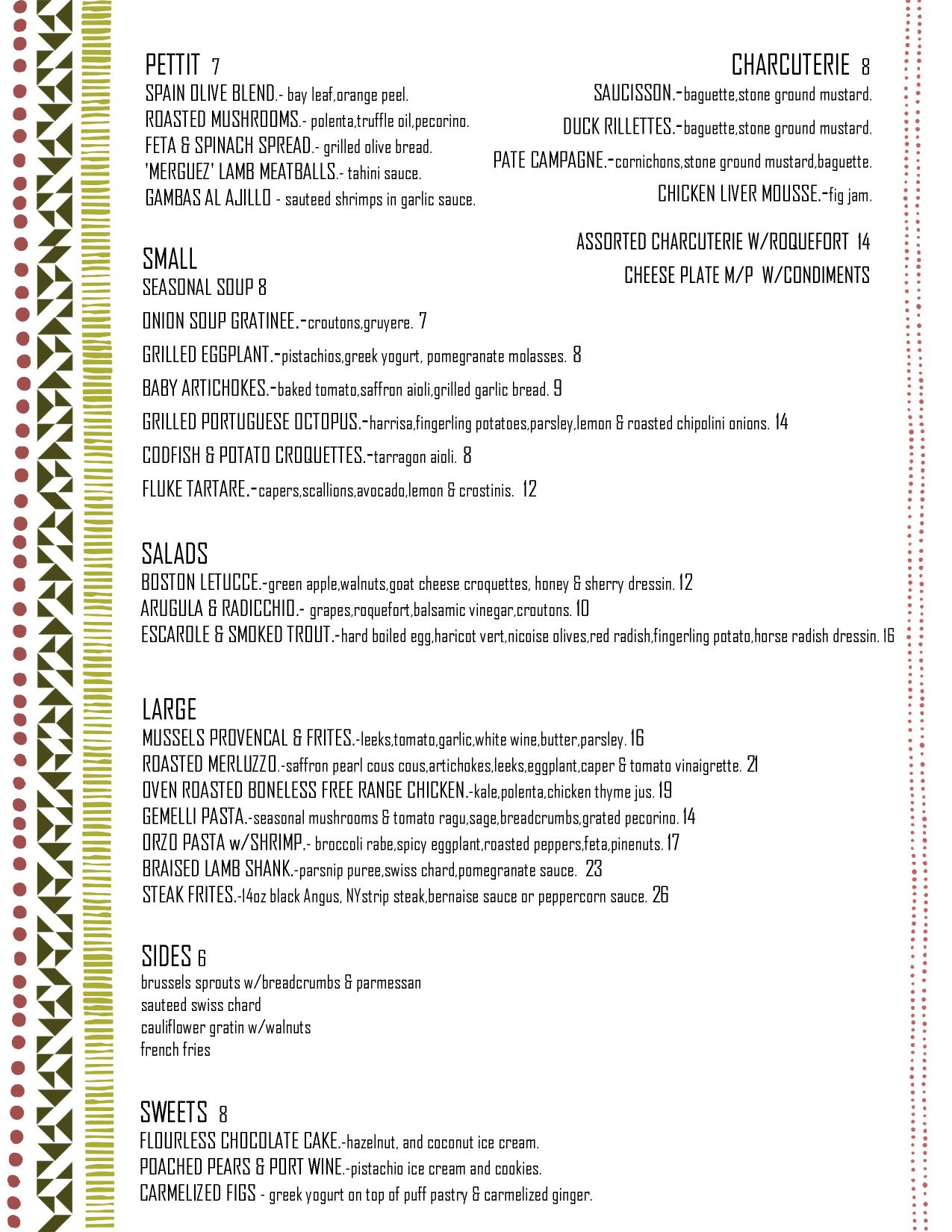 Did anyone notice that Yatenga French Bistro in Harlem was closed recently? Apparently, they were. The owners of Yatenga and now Silvana tell HarlemGal Inc that Yatenga’s kitchen was closed for about a week for remodeling and redesigning of their new menu! No worries. Yatenga in Harlem has reopened and we have their new menu. Take a look! Available no more are the classical French bistro items, but “more Mediterranean influences from Greece, Spain, France, Morocco, Italy and more!”